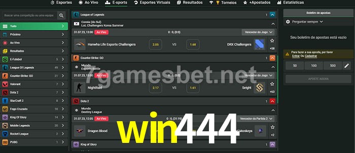 A aposta win444 oferece aos jogadores a experiência mais conveniente de apostas em eSports!